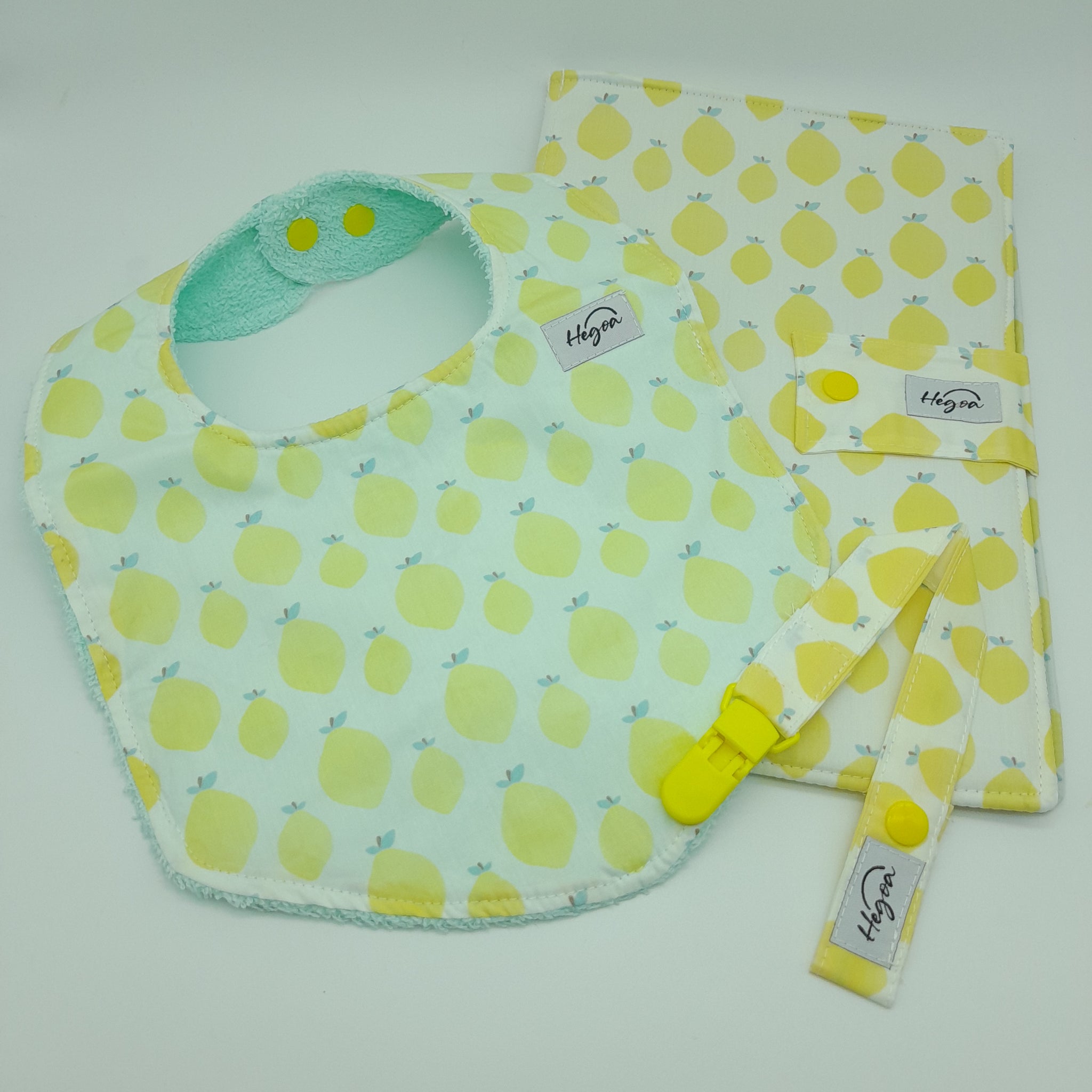 💛 Pack completo: babero + chupetero + portapañal